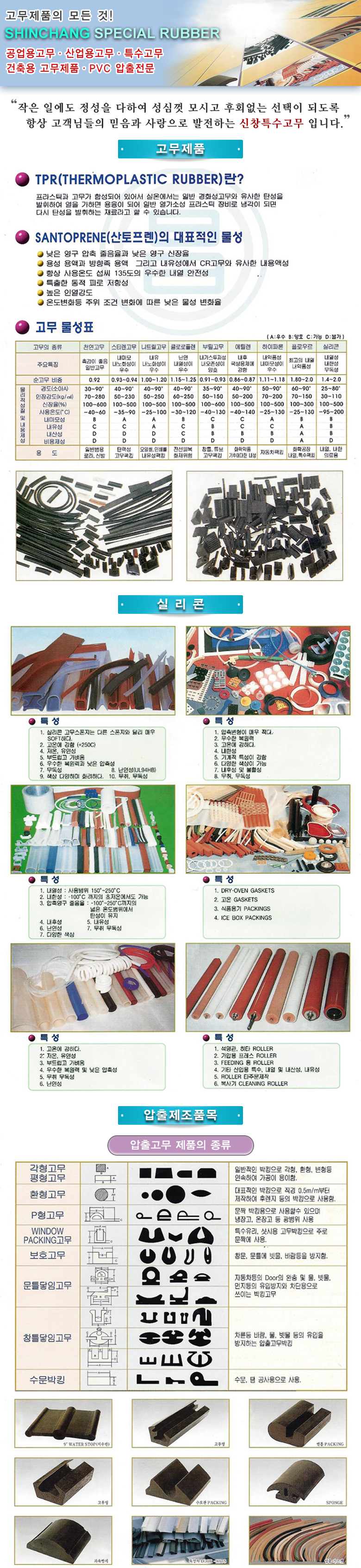 네오프렌 · EPDM · NR · SBR · 실리콘 · PVC SANTOPREN TPR · (사출)생활용품 · PRESS 고무제품